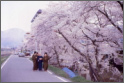 山ノ内町の中心を流れる夜間瀬川堤防沿い穂波温泉側には、約90本のソメイヨシノが咲き誇ります。