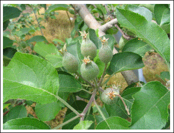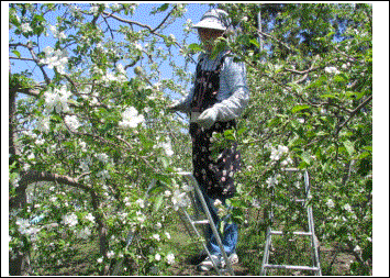 摘果後の状態です。これだとまだまだ数が多いので、今後1ヶ月めどに仕上げ摘果を行ない最終予定数まで減らします